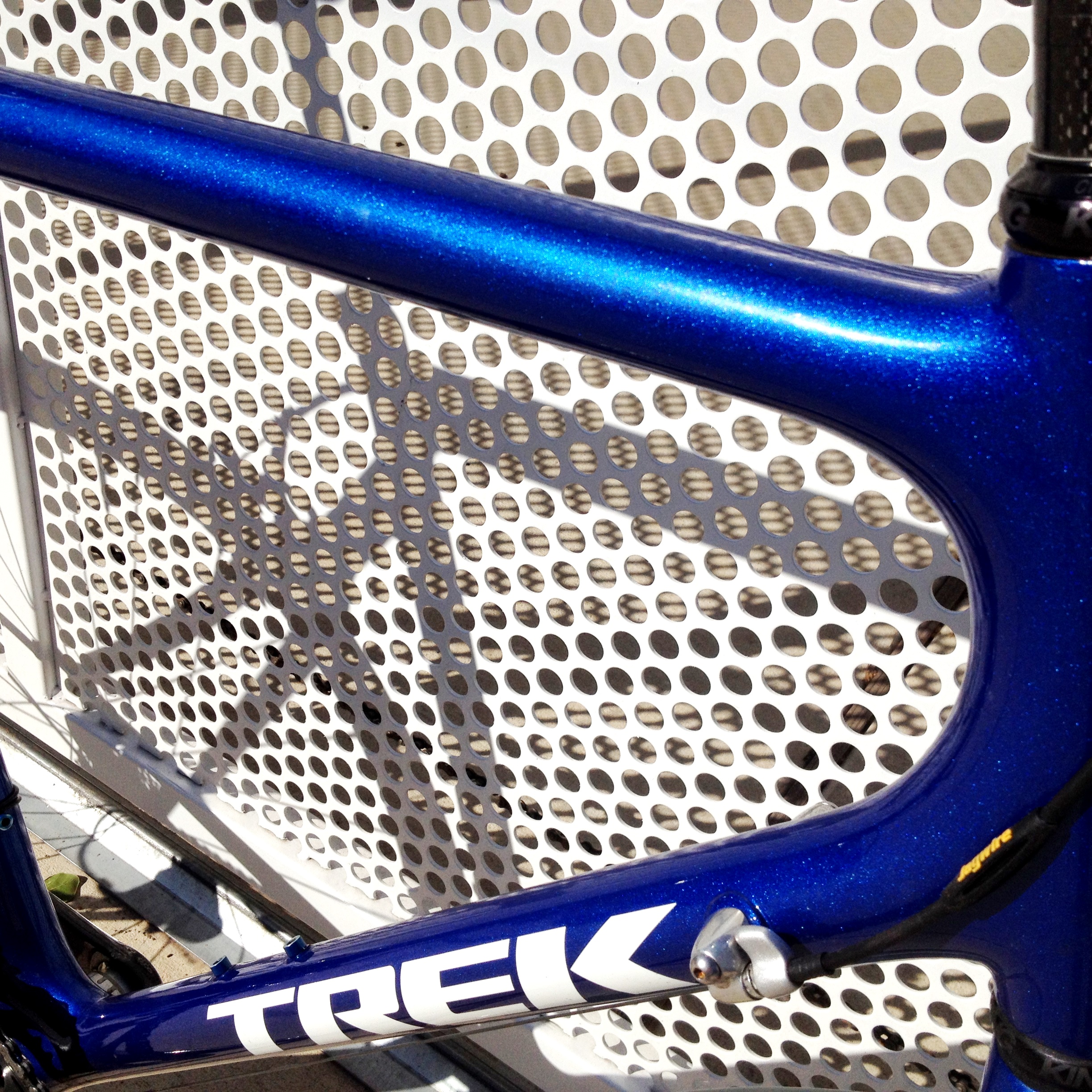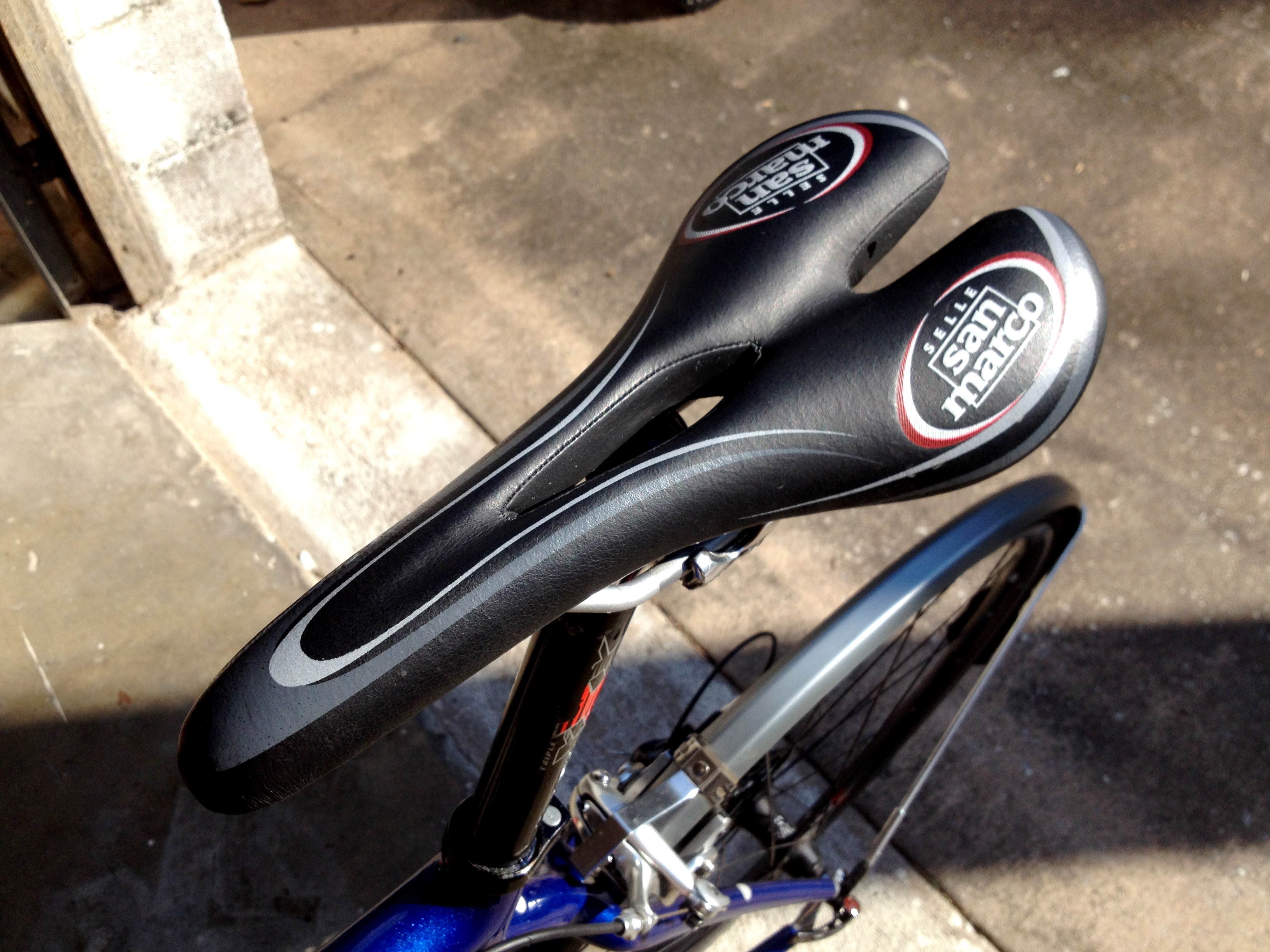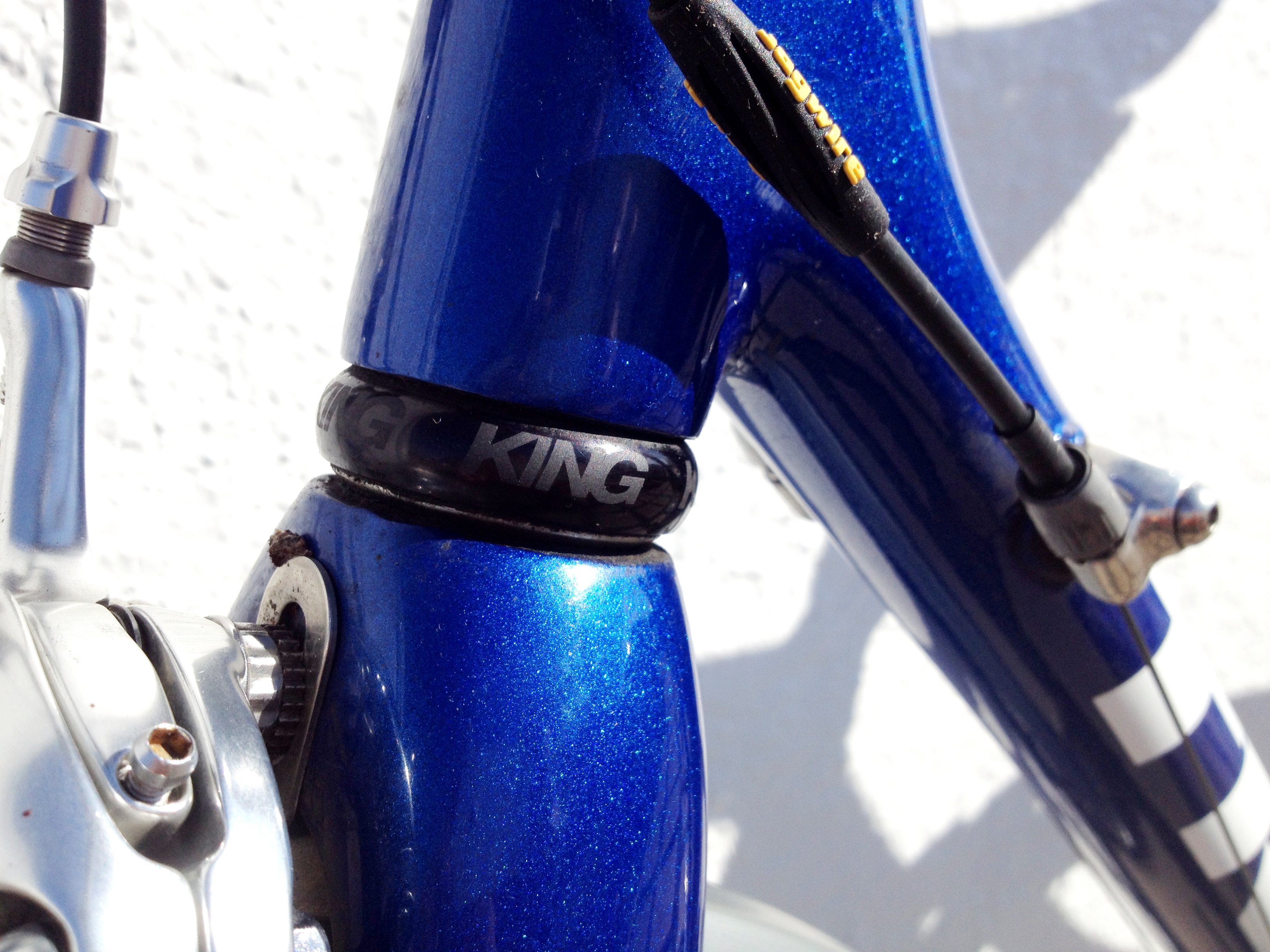 Shimano Dura Ace shifters & front derailleur (recently swapped out original Dura Ace rear derailleur to a new, longer cage Deore to allow a larger cassette range–for even better mountain riding)